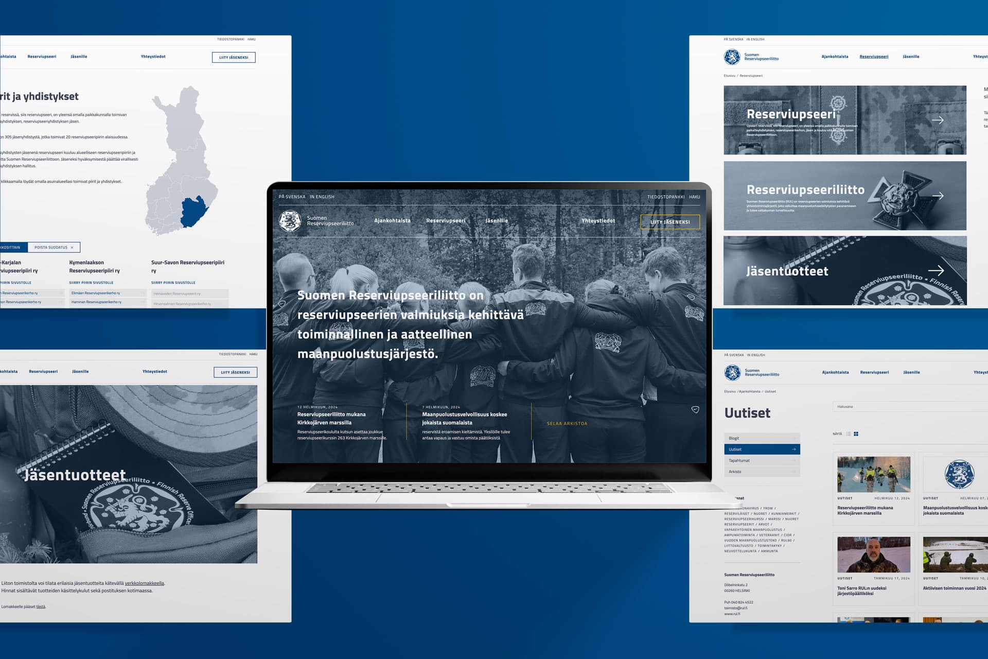 Suomen Reserviupseeriliitto on ensimmäisiä asiakkaitamme. Niitä firman kannalta kullanarvoisia: sellaisia, jotka uskoivat nuoriin tekijöihin silloin, kun muut eivät vielä uskoneet. Pääsimme toteuttamaan tämän perinteikkään yhdistyksen kanssa sivustouudistusta jo vuonna 2011, jolloin samaan pakettiin kuului myös koko liiton graafisen ilmeen uudistaminen astetta modernimmaksi.